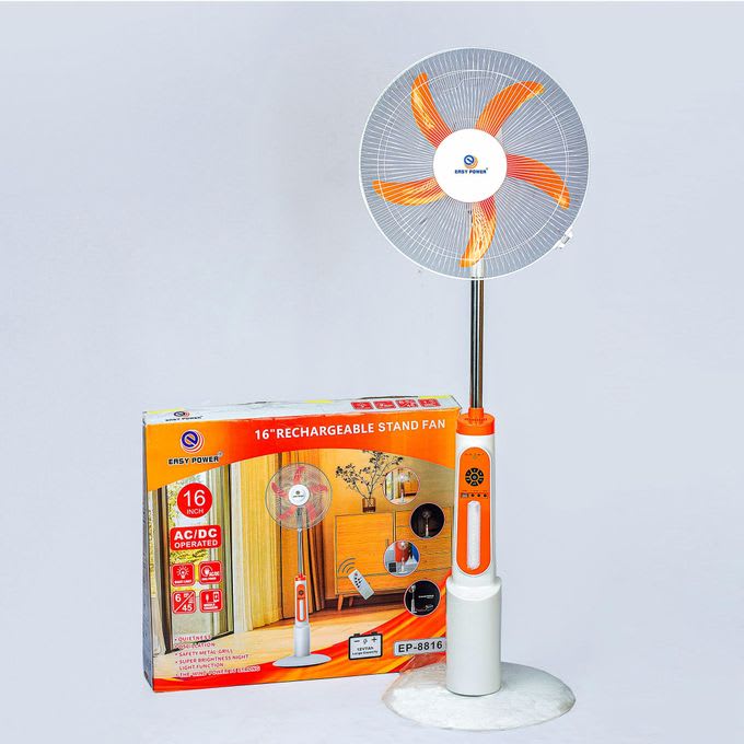 The EP-8816 is a 16-inch rechargeable solar-powered stand fan with built-in LED lighting and AC/DC dual power support. Ideal for homes, greenhouses, and factories, it offers reliable airflow and lighting even during power outages.