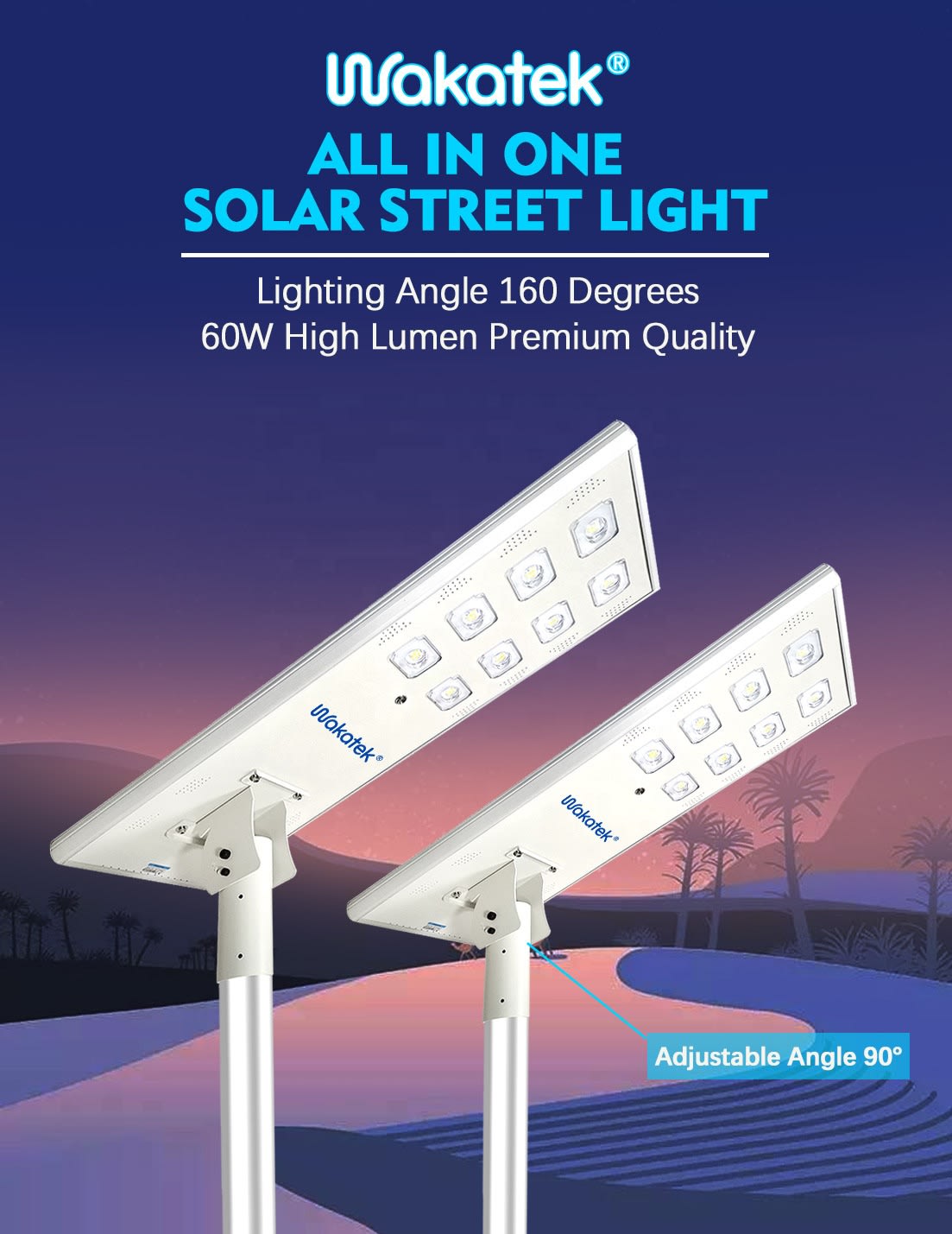 WAKATEK 60W 100W Led Solar Street Lights Outdoor Premium Integrated Solar Power Street Light